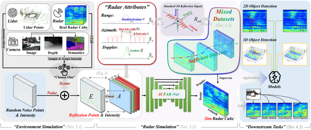 研究人员介绍,SA-Radar提供了一条完整的雷达仿真管线,精心设计了从环境仿真到雷达立方体仿真的全过程。