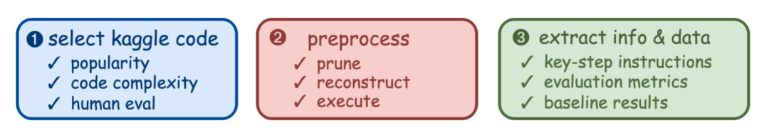 为了确保任务的真实性和时效性,防止数据污染,IDA-Bench的构建流程完全自动化。它能持续从Kaggle上发布的最新项目中提取任务,经过筛选、预处理和人工检查后,生成新的测试用例。