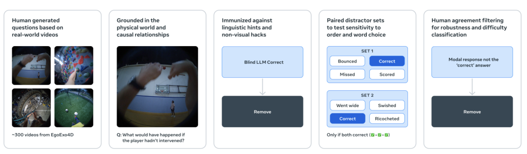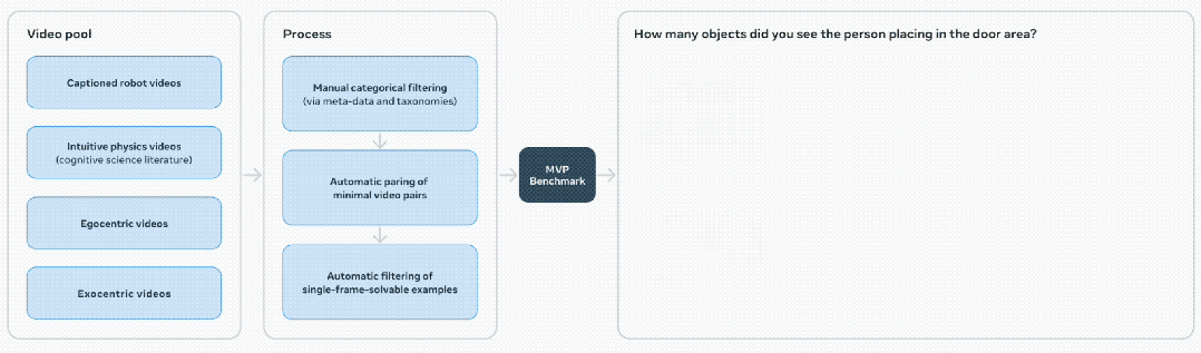 Meta还发布了三个新的基准测试,用于评估现有模型从视频中理解和推理物理世界的能力。