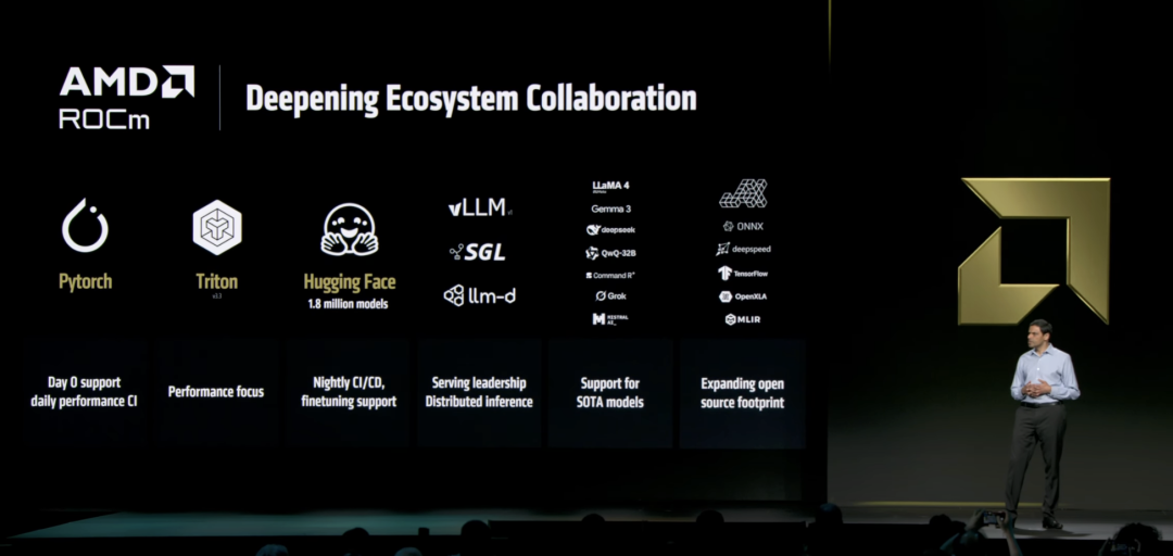 ROCm 7还与VLM和SGLang等开源推理框架深度集成,并且支持超过180万个Hugging Face模型的开箱即用。