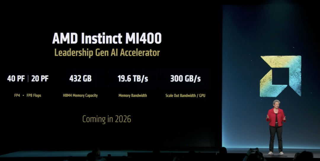 MI400系列将采用下一代CDNA架构,预计速度比MI300系列快10倍,FP4运行速度将达到40PFLOPs。