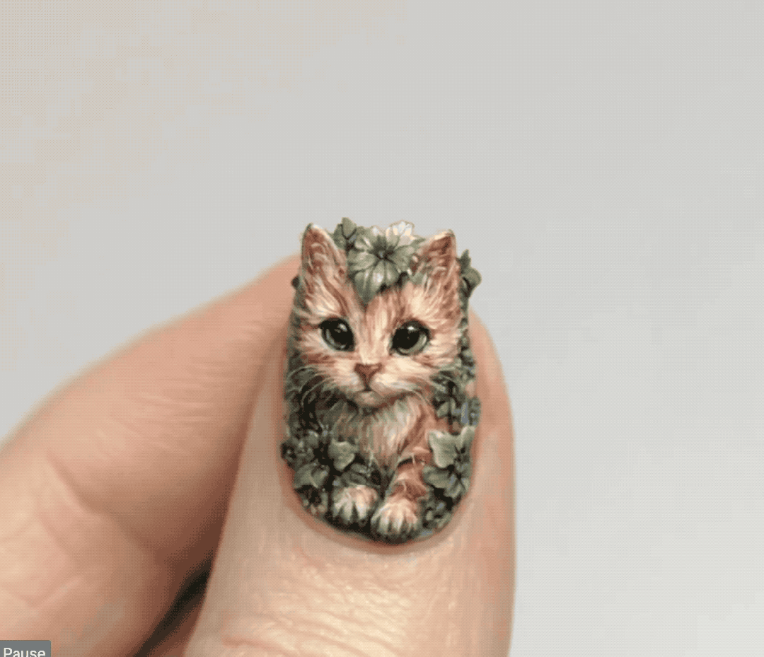 小猫美甲确实很精细,但更细节的是手部的纹路,手指上居然还有指纹(虽然有一部分指纹是缺失的)。