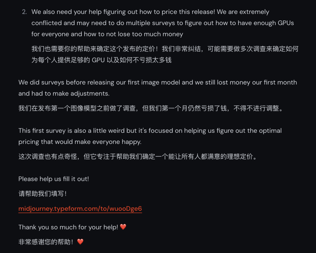 并且,Midjourney还非常有诚意地表示,希望大家给些建议,让定价能够满足每个人的需求。
