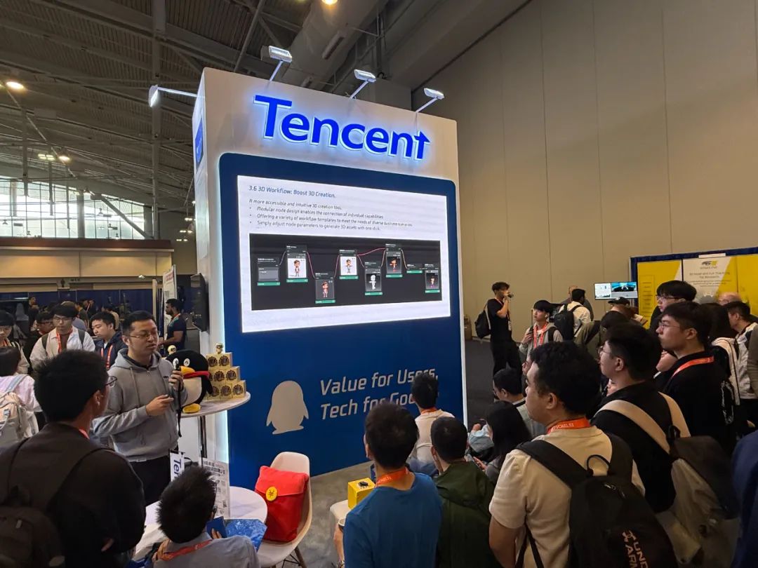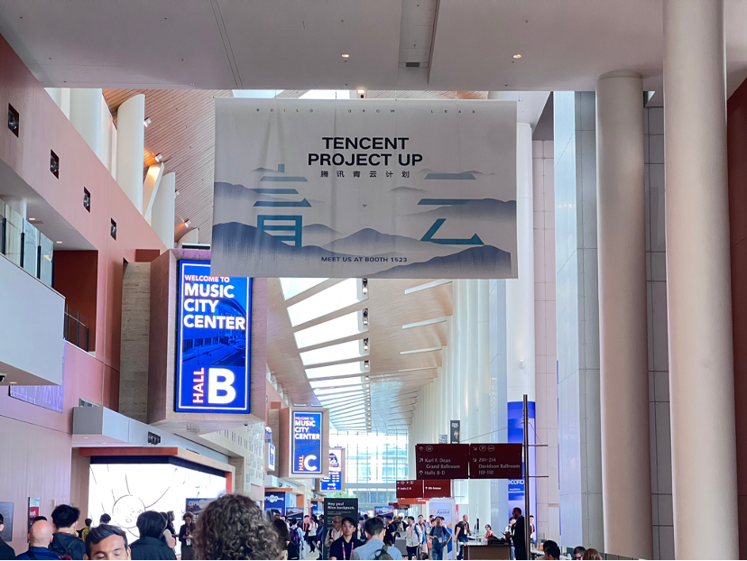 在以谷歌/Meta等国际巨头为主导的展区里,中国企业规模创纪录,像腾讯、字节等大展区里面人从众。