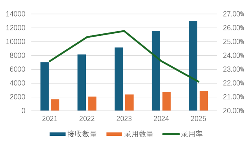 所以这几年CVPR的接收数量逐年递增。今年CVPR共收到13008份有效论文,2878篇论文被接收,最终录用率为22.1%,录用率已经下降不少了,这样导致接收难度陡增。