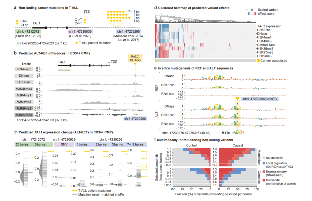 例如在一项针对T细胞急性淋巴细胞白血病 (T-ALL)的研究中,AlphaGenome就通过引入MYB DNA结合基序,成功解析了TAL1基因附近的致癌变异。