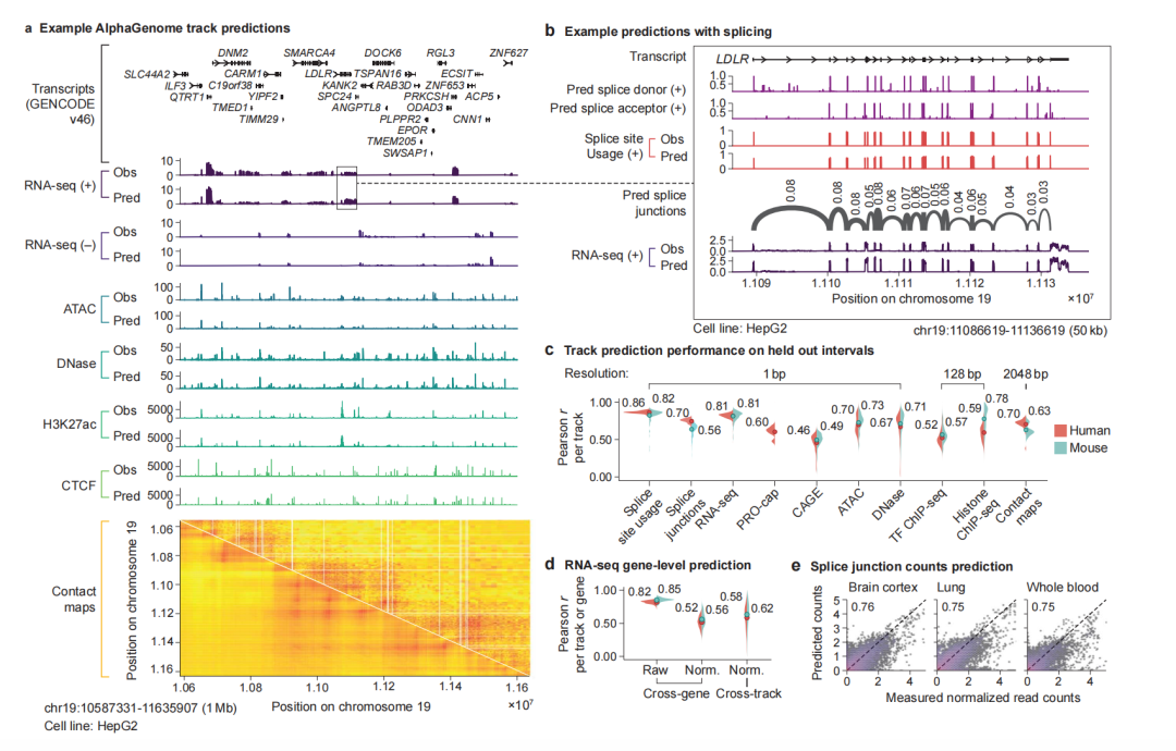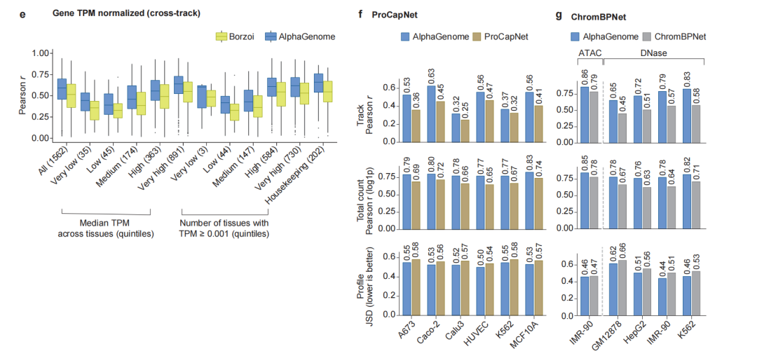 另外,AlphaGenome也在跨模态基因组轨道预测方面,都达到了最先进水平。