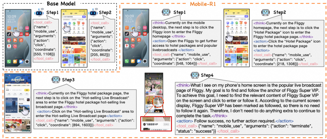 结果Mobile-R1顺利地完成了这一任务。