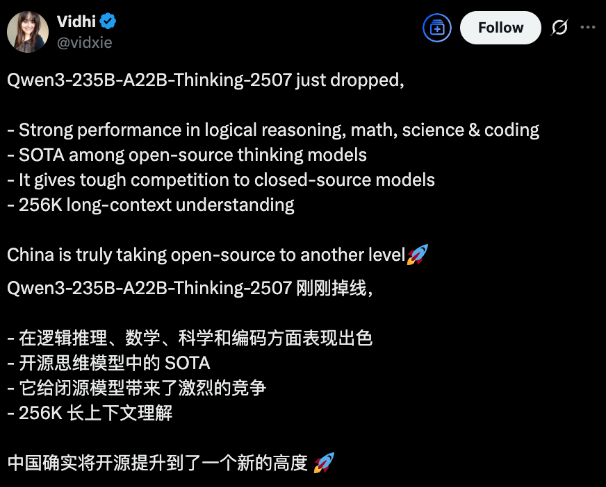 Qwen3-Coder刚炸完场,就隔了一天,马上全新开源Qwen3系列最强推理模型——Qwen3-235B-A22B-Thinking-2507。
