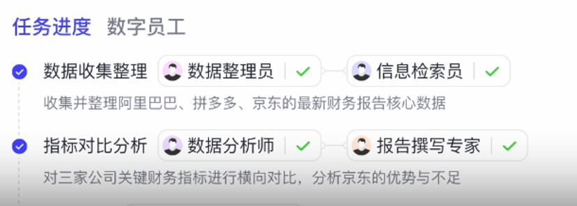By the way,这里也体现了多智能体协同能力,面对数据收集整理任务时,数据整理员和信息检索员将分工协作。