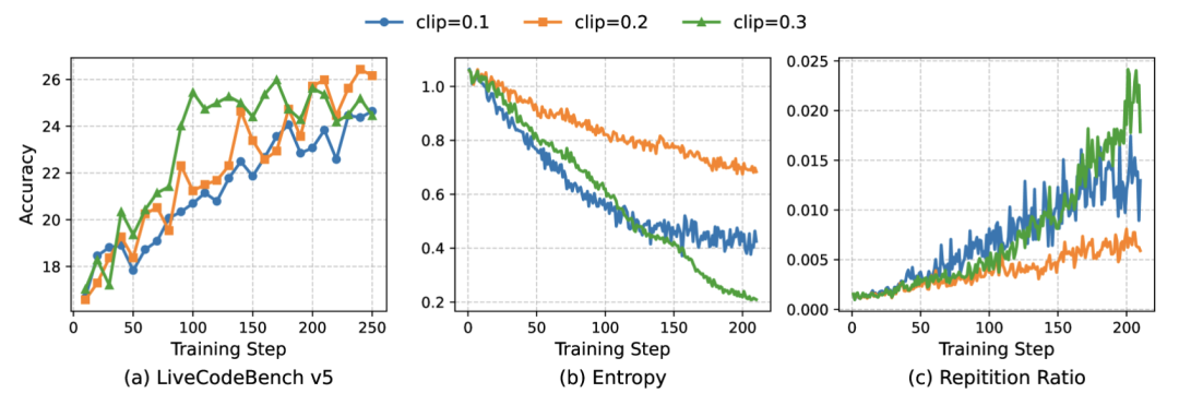 若给高熵Token加严约束(裁剪阈值太小),模型推理“放不开”,学不到新方法;