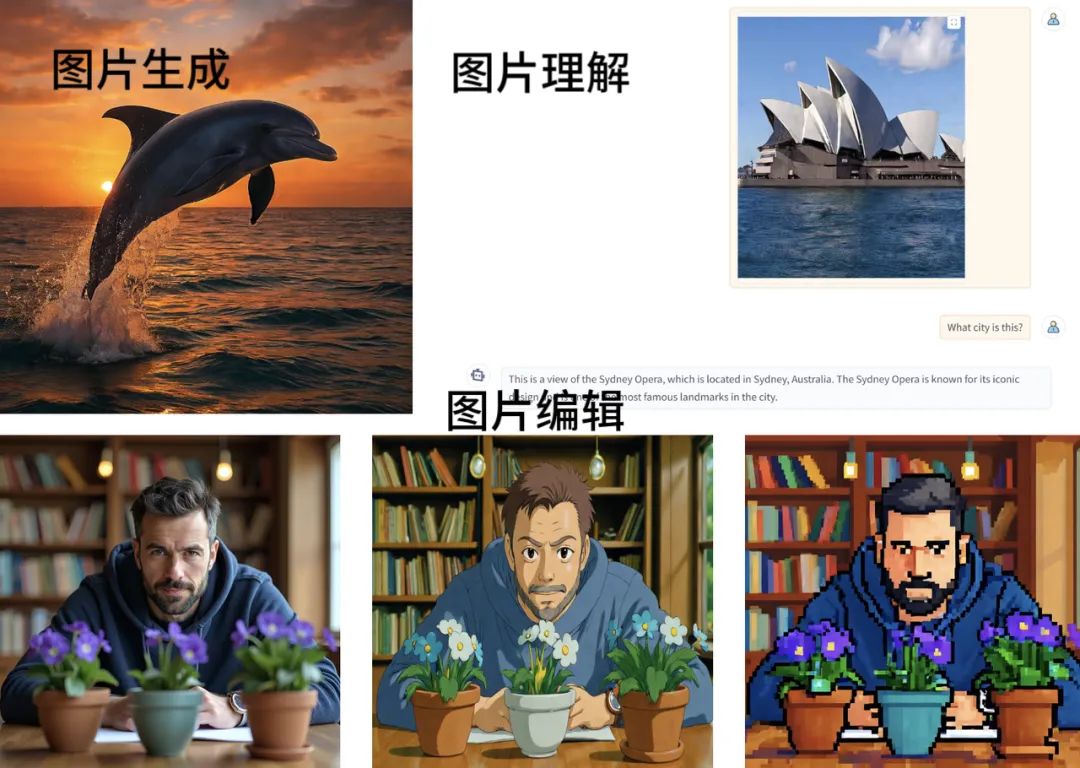 该架构的核心优势在于将图像生成深度整合到多模态框架中,而非作为一个独立模块存在,从而能让图像理解、文本到图像生成、图像编辑三大核心能力在单一模型中实现完美融合。
