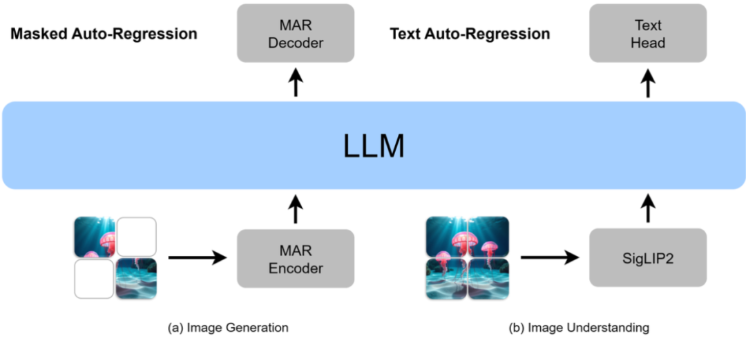 MAR编码器与SigLIP2都天然契合自回归的统一训练范式,有助于实现跨任务、跨模态的一体化建模。