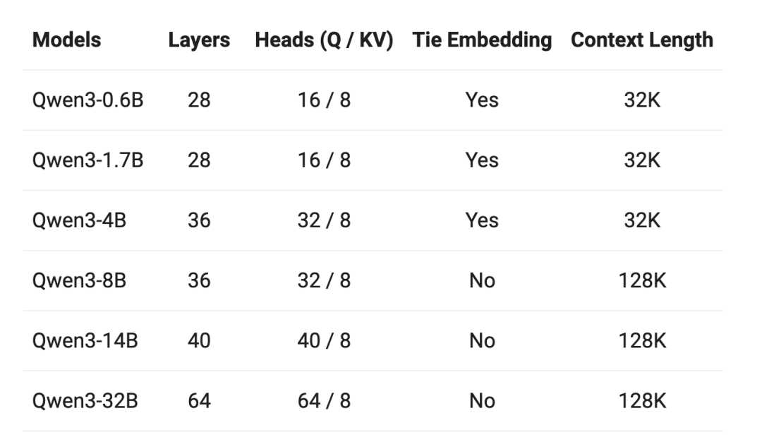 针对不同的理场景和硬件资源,Qwen3系列还包含了不同大小的密集(Dense)模型(从0.6B到32B)。