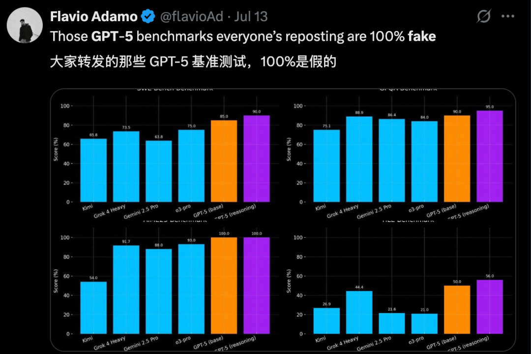 天天各种真假混杂的爆料,一些泄露的GPT-5基准测试都是fake news,网友表示,现在除了官方,谁都不可信。