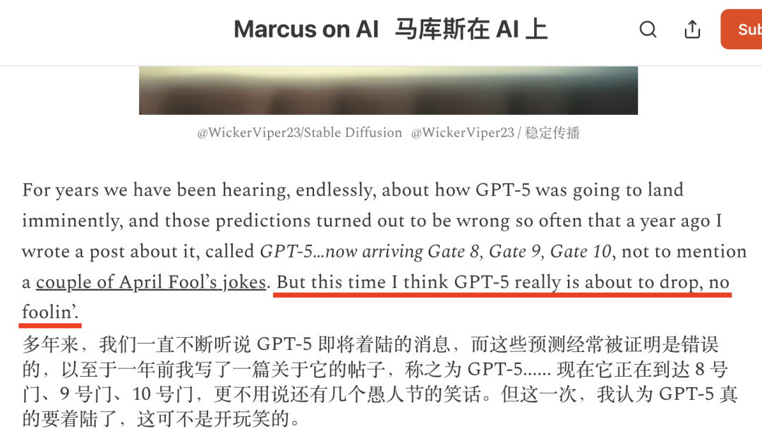 “泼冷水王”马库斯也发文表示,即便GPT-5真的更强大,但是他还是要给出7个悲观预测: