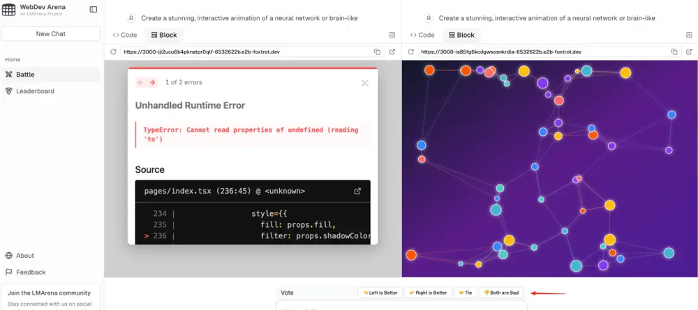 例如一名用户让Lobster和另一个模型同时创建交互式神经网络动画,Lobster一次性就生成了一个带有彩色节点的解决方案,而另一个模型在代码运行中出现错误。