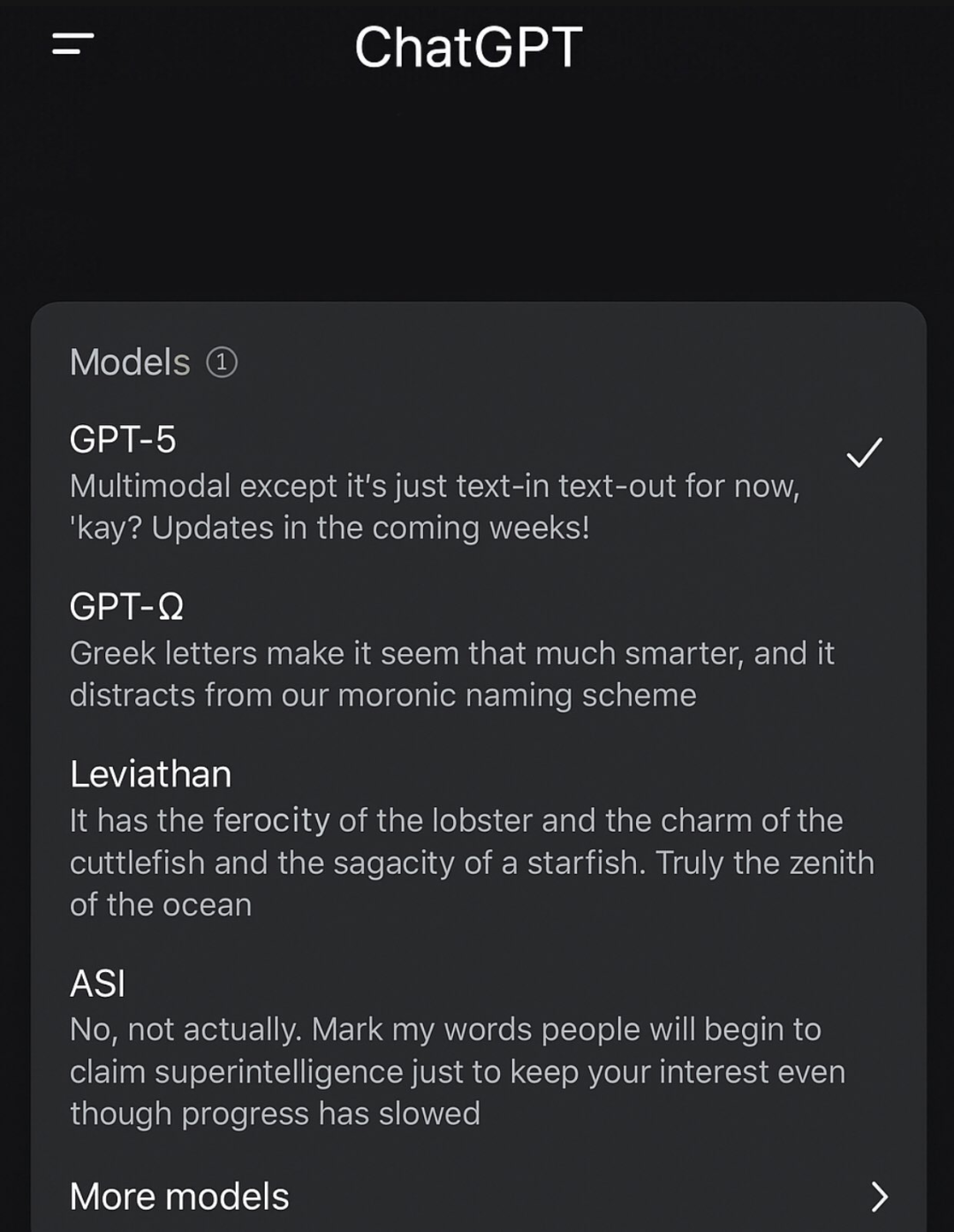 而且在MacOS应用的模型列表中也发现了GPT-5。