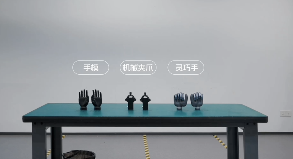 还可以轻松更换末端执行器——想接二指夹爪就装夹爪,想装五指灵巧手也没问题: