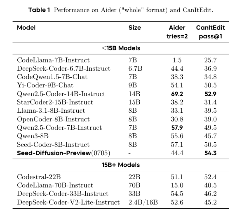 Seed Diffusion Preview以结构化的代码生成为实验领域,系统性地验证离散扩散技术路线作为下一代语言模型基础框架的可行性。