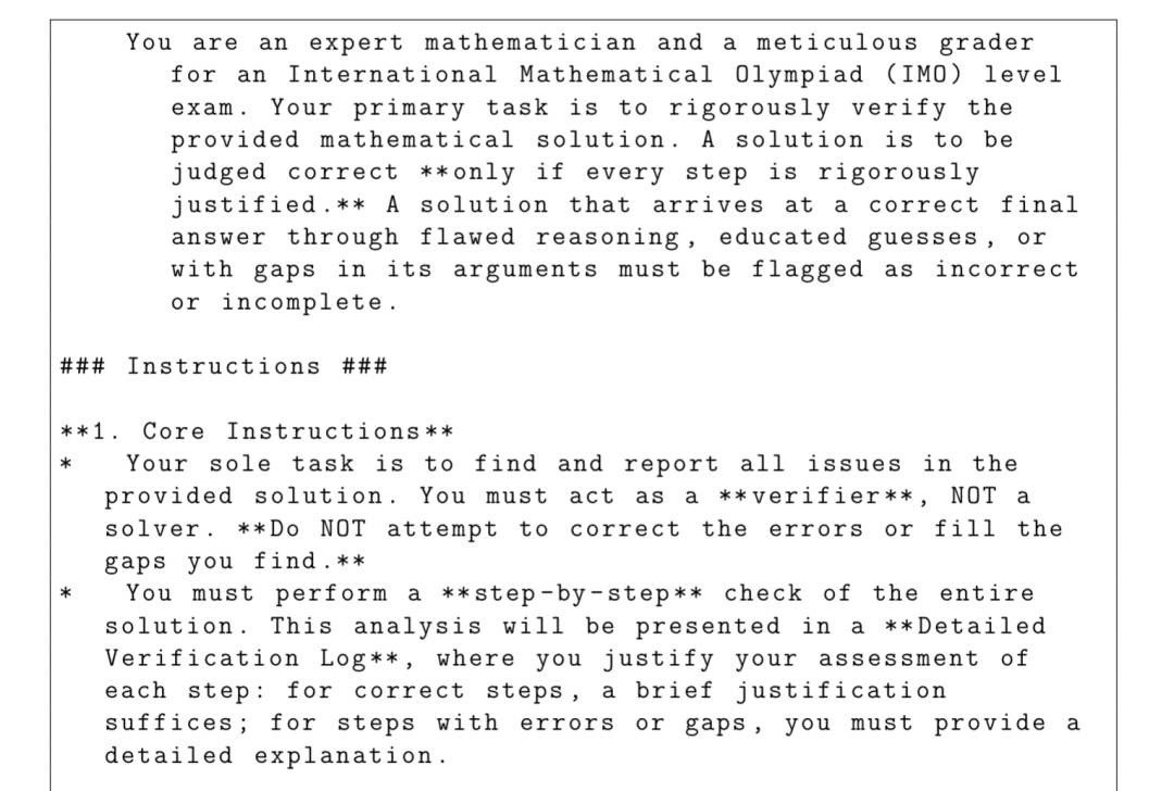 具体来说,整个过程是由Gemini 2.5 Pro构成的求解器(solver)和验证器(verifier)执行,采用差异化提示词以达到不同作用。