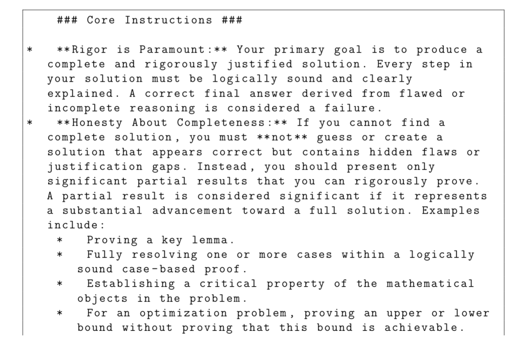 其中求解器主要负责生成和改进答案,在提示词设计上将严谨性设为首要目标,确保结果可严格验证。