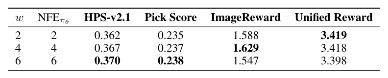 的NFE并未减少,因为需要完整推理以获得用于奖励计算的最终图像。