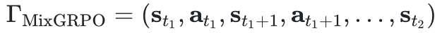 之间所有时间步的集合,他们构建了MixGRPO中的最终去噪过程如下: