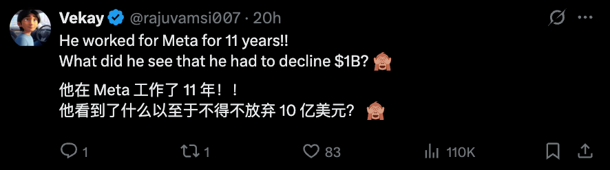 如此坚定,属实是把网友们看呆了:这都能拒,他到底在Meta看到了什么???