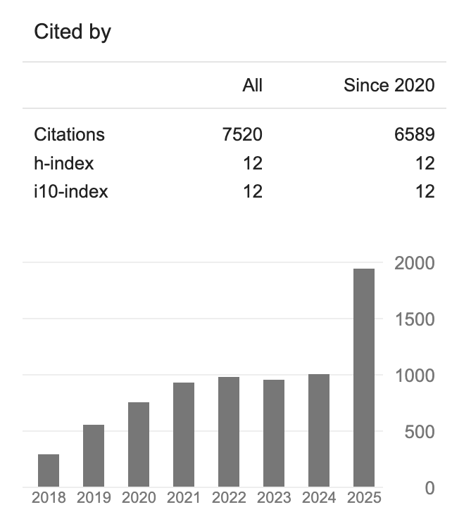 从Google Scholar来看,塔哥研究的被引量为7520,h-index为12。