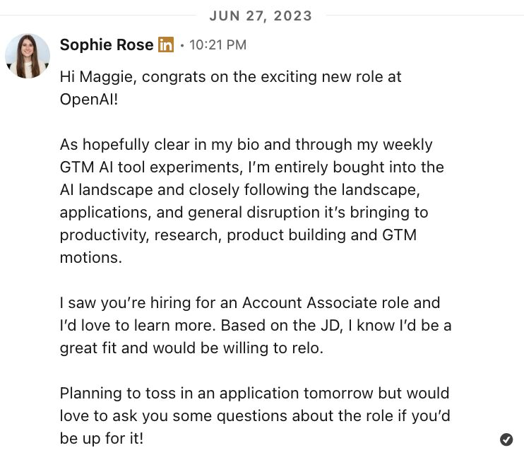 [1]https://www.businessinsider.com/cold-linkedin-message-landed-me-my-job-at-openai-2025-7