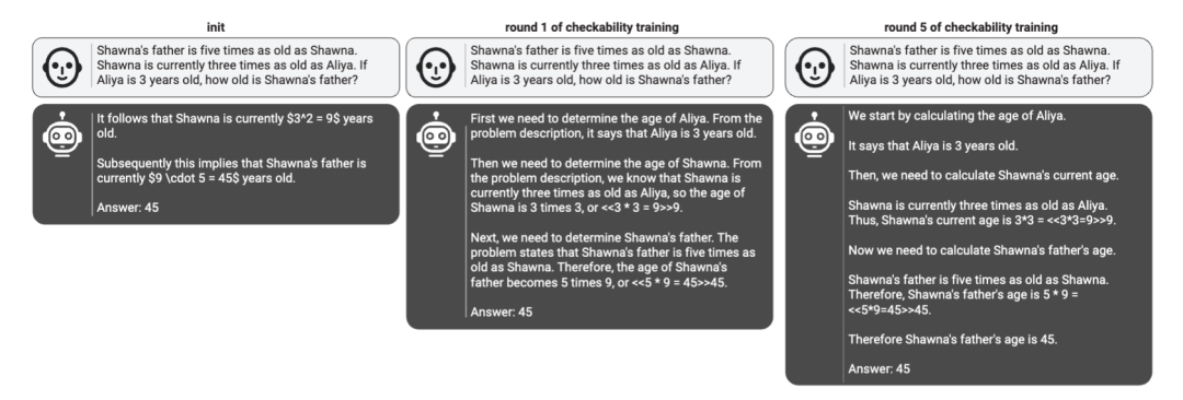 在多轮对抗训练后,“靠谱的证明者”的正确率和“验证者”的抗干扰能力都将不断提高,且让模型生成更准确且易读的输出,但与此同时,模型也能生成出更具欺骗性的错误答案。