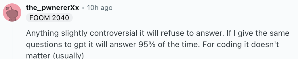 还有就是Claude老生常谈的问题,非常容易拒绝回答有争议的问题。