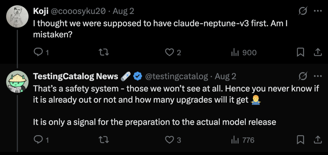 再往前追溯,在7月初的时候有人发现Anthropic正在对新模型进行Niptune v3安全测试,当时推算新模型会在未来几周发布,和最新曝光信息倒是能对上。