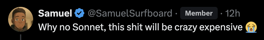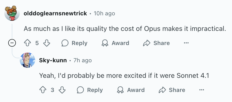 不少人都在呼唤Sonnet,因为超大杯Opus通常都很贵。