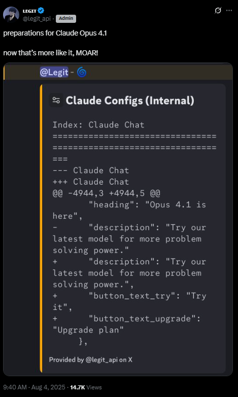 [2]https://www.testingcatalog.com/claude-4-1-likely-in-internal-testing-as-anthropic-prepares-safety-checks/