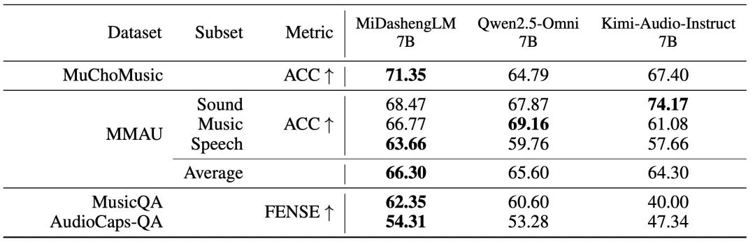 MiDashengLM在音频描述、声音理解、音频问答任务中具备显著优势,同时具备可用的语音识别能力。