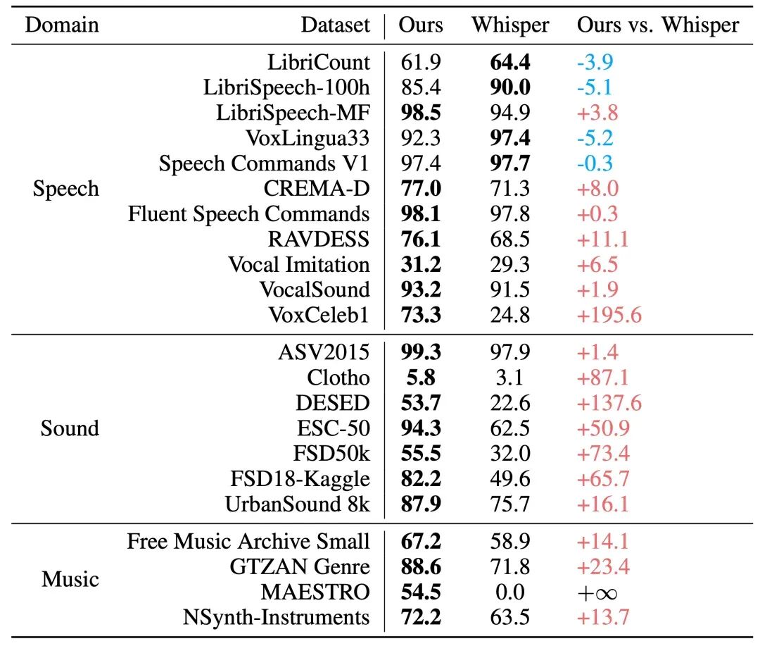2024年,小米发布的Xiaomi Dasheng声音基座模型在国际上首次突破AudioSet 50+ mAP,在HEAR Benchmark环境声、语音、音乐三大领域建立领先优势并保持至今。