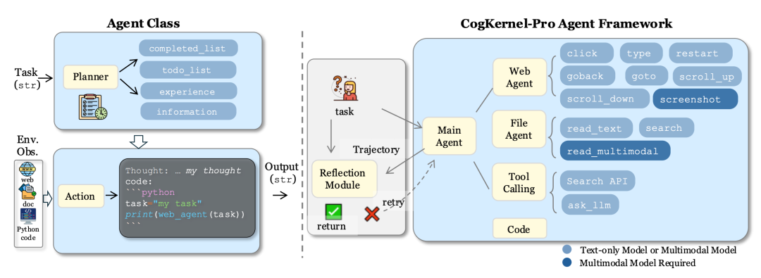 Cognitive Kernel-Pro以Python代码为动作空间,充分发挥现代LLM的推理和代码生成能力。