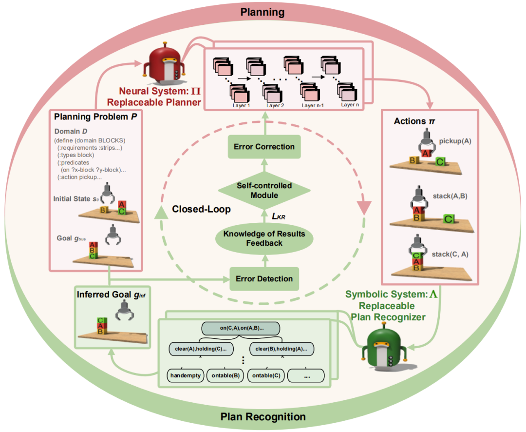 其中,正向的神经规划器和反向的符号规划识别器构成KR闭环结构。