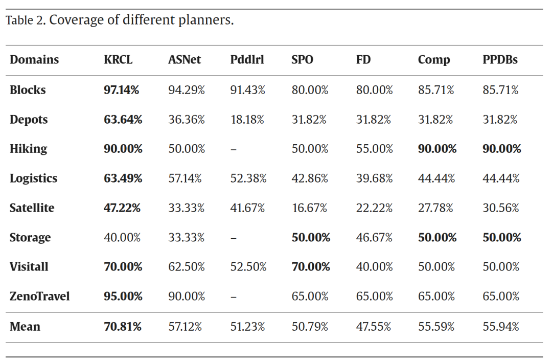 研发团队在国际IPC(International Planning Competition)竞赛的8个代表性规划任务上系统性地评估了KRCL的性能。