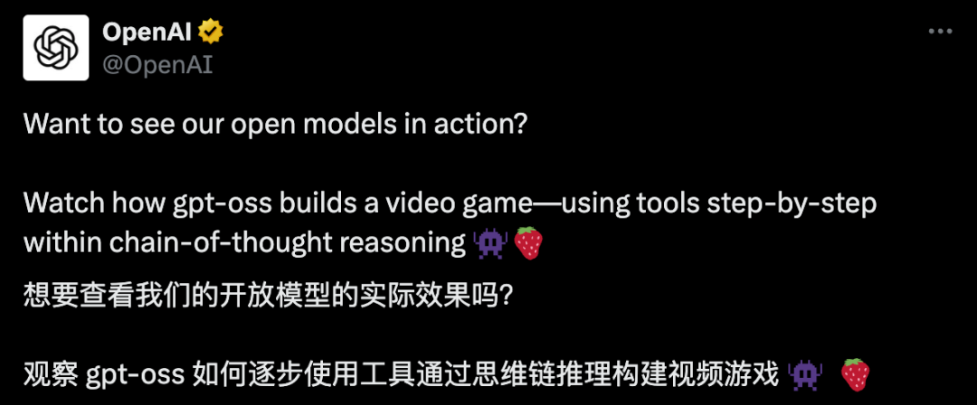 在开源动作一个小时后,OpenAI官方还放出了一个实测效果的视频。