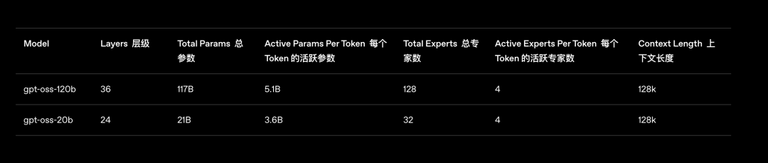 gpt-oss-120b每个token激活5.1B个参数,而gpt-oss-20b激活3.6B个参数。这些模型分别具有117b和21b的总参数。