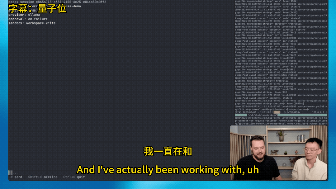 他俩是在一台120G的Macbook Pro上进行的测试,借助Ollama在本地运行120B的gpt-oss(搭了2块H100)。