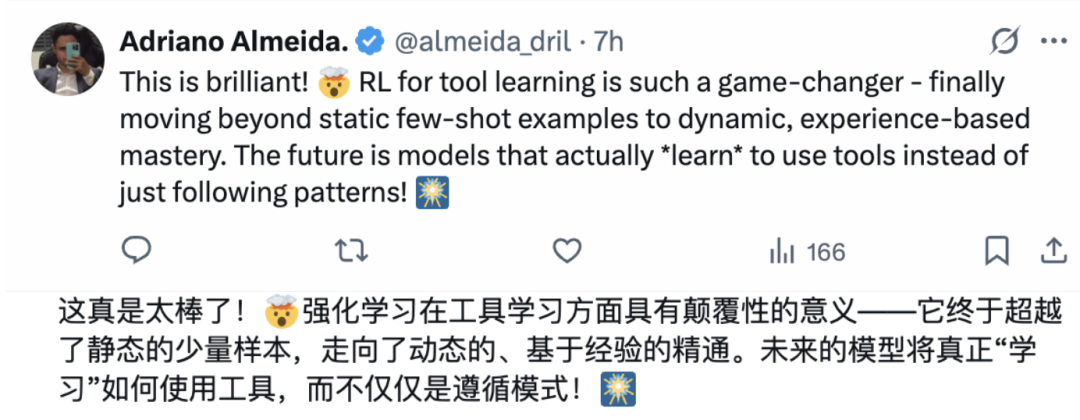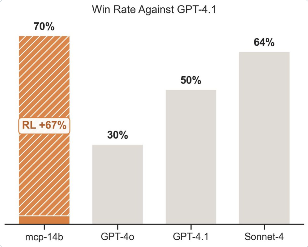 只需一个MCP Server的地址,agent就能自动发现工具、生成任务,通过强化学习在闭环反馈中摸索出最优调用策略。