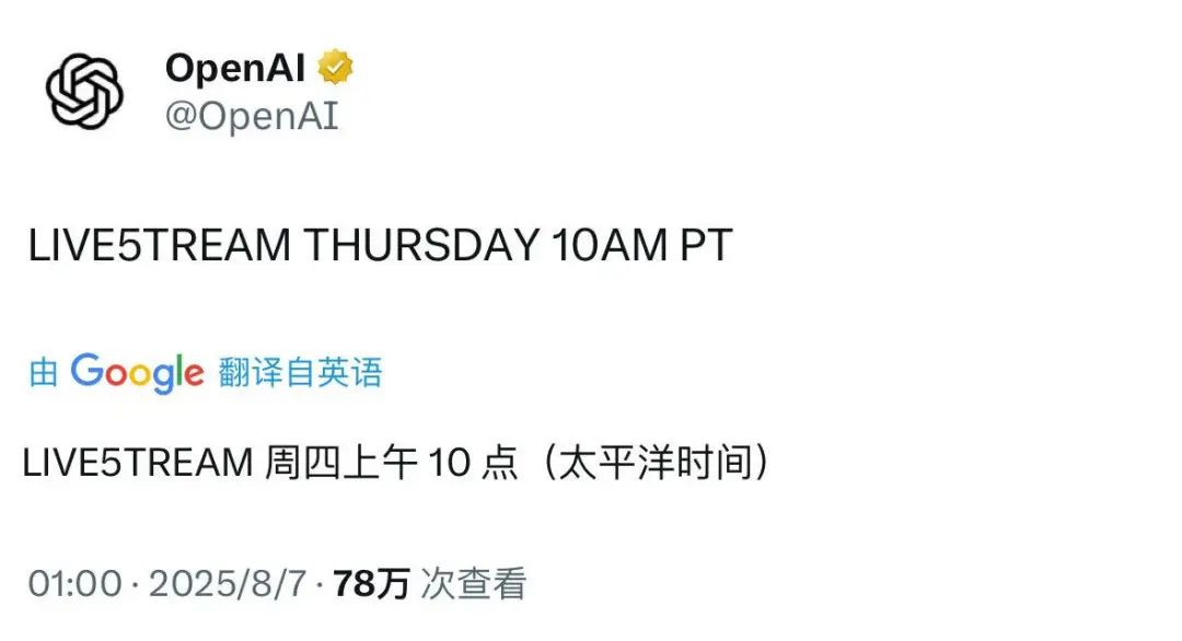 而今天半夜,也就是8月8日凌晨1点(太平洋时间8月7日上午10点),打了800集预告的GPT-5,或许就要来了……