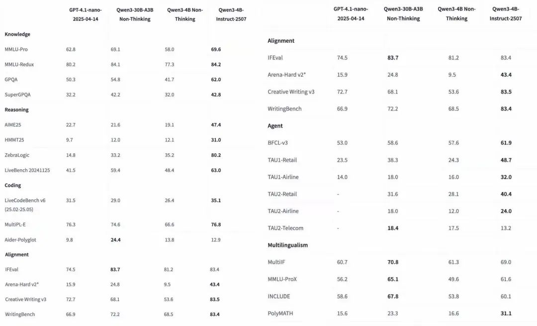 Qwen3-4B-Instruct-2507:非推理模型,大幅提升通用能力