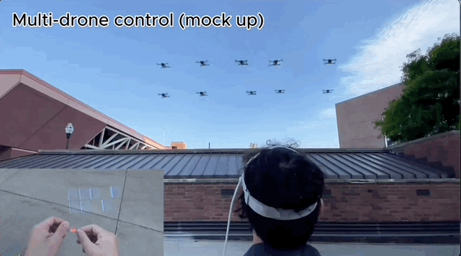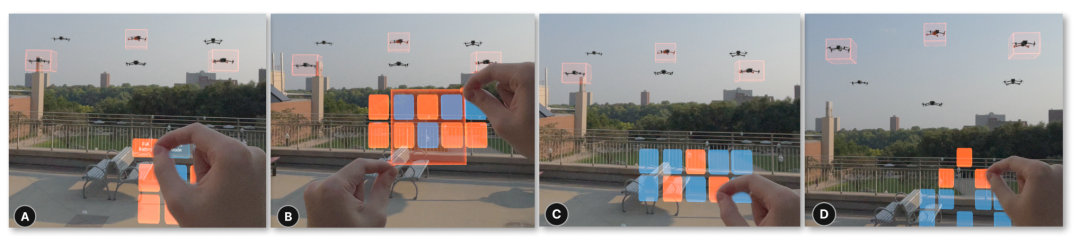 为展示这一点,研究者开发了一个基于混合现实的无人机控制应用,该应用用无人机中嵌入的跟踪器代替AI场景理解组件。