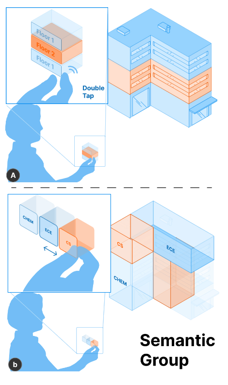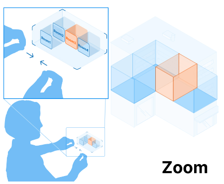 6、空间缩放分组:用双手缩放的手势,在层级结构中导航,比如从查看整栋楼缩小到查看某一层的房间。