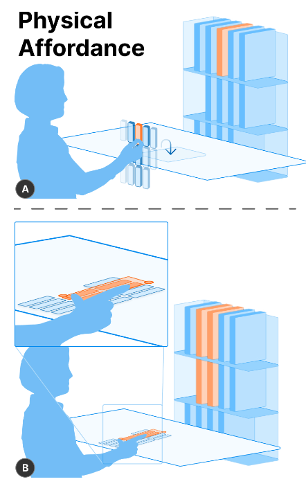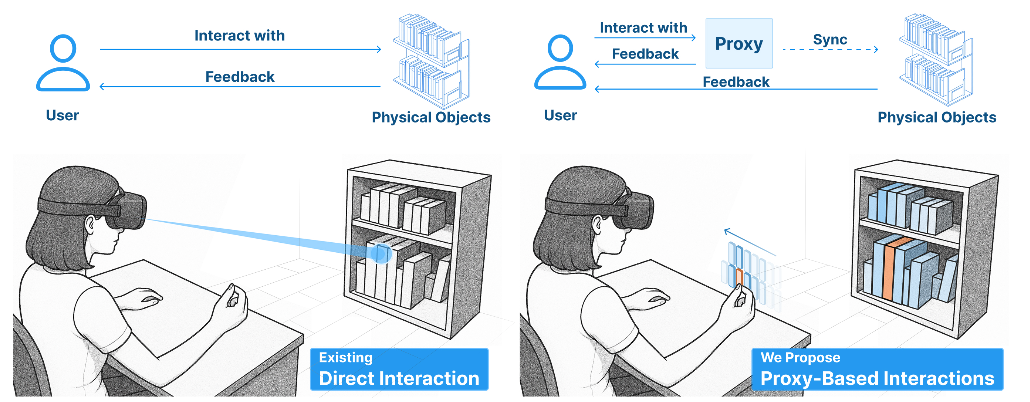 为使用户能主要关注现实物体, Reality Proxy在与代理交互时,将关键视觉反馈直接显示在物理物体上。